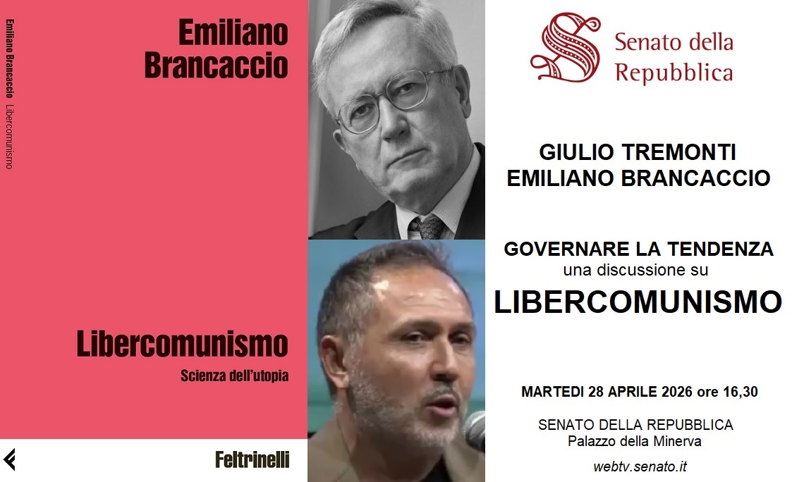 Dibattito con Giulio Tremonti ed Emiliano Brancaccio sul tema: “Governare la tendenza. Una discussione intorno al volume Libercomunismo”.
