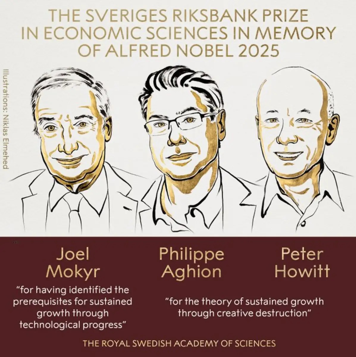 “..L’olandese Joel Mokyr, il francese Philippe Aghion e il canadese Peter Howitt sono i vincitori del Nobel per l’economia 2025, «per aver spiegato la crescita economica trainata dall’innovazione». L’attribuzione susciterà meno polemiche del premio per la pace assegnato alla figura bifronte di Maria Corina Machado, la declamata paladina della rinascita democratica venezuelana tuttora accusata di aver sostenuto progetti golpisti contro Chavez e sodali. Gli economisti premiati, se non altro, dovrebbero avere gli armadi sgombri da simili scheletri..”