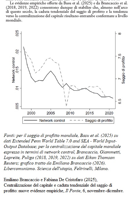 (stralci da Emiliano Brancaccio e Fabiana De Cristofaro (2025), Centralizzazione del capitale e caduta tendenziale del saggio di profitto: nuove evidenze empiriche, Il Ponte – rivista fondata da Piero Calamandrei, 6, novembre-dicembre)
